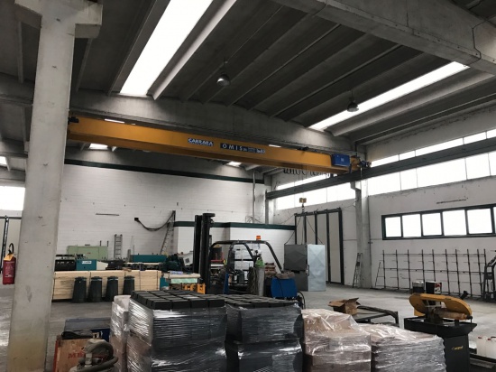 Suwnica pomostowa dwudźwigarowa producenta Omis. Wysokość ponad torowiskiem 800 mm.